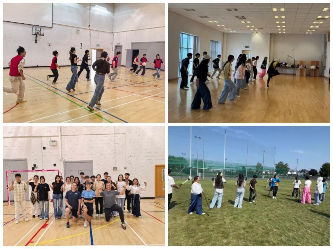 除学术课程外,游学活动精心安排了一系列文化体验项目,让学子们在参与中沉浸式感受爱尔兰的文化艺术魅力。在体育项目体验环节,师生们不仅学习了充满对抗性的盖尔式足球,还尝试了需要精准技巧的曲棍球,这些本土运动项目融合了团队协作与战术策略,让师生们深刻体会到爱尔兰人对运动精神的独特诠释。高尔夫体验则安排在风景如画的郡立球场,专业教练的分步指导让师生们都深刻感受到这项绅士运动的魅力。在踢踏舞工坊中,老师通过分解基础步法与节奏训练,引导学员逐步掌握“跺、踢、点”的三拍律动技巧,让师生进一步领略了爱尔兰的舞蹈艺术。