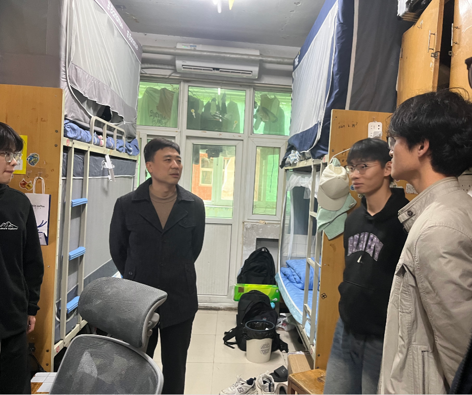 在走访过程中,汪晓伟与同学们亲切交流,认真听取了同学们的意见和建议,亲切地询问大家生活需求,耐心解答同学们在学习生活中遇到的问题。在新生宿舍,他勉励2025级新生要从入学之初就详细了解专业人才培养方案,做好个人职业规划;要努力夯实专业基础,积极参加各类实践项目和校园活动,全面提升个人综合素质。在毕业生宿舍,他详细了解了同学们的就业去向及考公考研准备情况,并就当前就业形势与同学们进行探讨,鼓励大家要树立科学理性的就业观,做好职业规划,主动参加校内外举办的招聘会,积极投递简历,争取更多的就业机会。